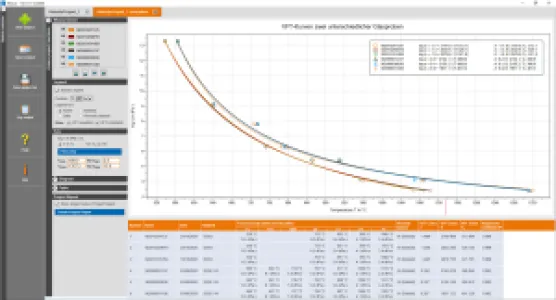 eVisco supports you in determining characteristic fixed points of EMI III measurements and in creating viscosity-temperature curves (VFT curves) based on the Vogel-Fulcher-Tammann (VFT) equation.